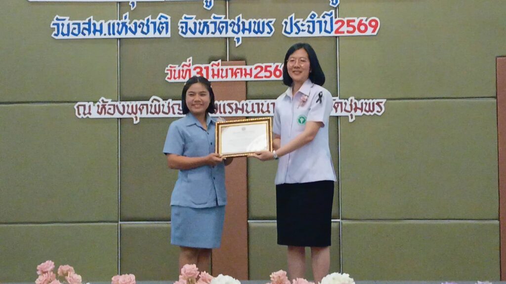 วันที่ 31 มีนาคม 2569 ณ โรงแรมนานาบุรี ตำบลท่าตะเภา อำเภอเมือง จังหวัดชุมพร พญ.เหมือนแพร บุญล้อม นายแพทย์สาธารณสุขจังหวัดชุมพร เป็นประธานเปิดงาน “วันอาสาสมัครสาธารณสุขแห่งชาติ จังหวัดชุมพร ประจำปี 2569” เพื่อเชิดชูเกียรติและสร้างขวัญกำลังใจให้แก่เหล่าอาสาสมัครสาธารณสุขประจำหมู่บ้าน (อสม.) ผู้เสียสละ โดยมีคณะผู้บริหารสาธารณสุข ระดับจังหวัดระดับอำเภอ นักวิชาการสาธารณสุข คณะกรรมการบริหาร อสม.8 อำเภอ 350 คนเข้าร่วม มีนายนพพร อุสิทธิ์ นายกองค์การบริหารส่วนจังหวัดชุมพร ร่วมพบปะ กล่าวถึงความคืบหน้า ในการประสานงานกับ สาธารณสุข ดูแลสุขภาพประชาชนในจังหวัดชุมพร
