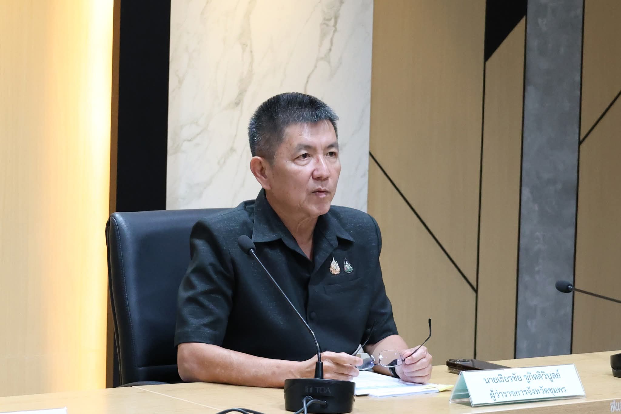 วันที่ 3 เมษายน 2569 ผู้สื่อข่าวรายงานว่า นายเธียรชัย ชูกิตติวิบูลย์ ผู้ว่าราชการจังหวัดชุมพร ได้เป็นประธานการประชุมคณะกรรมการร่วมภาครัฐและเอกชนเพื่อแก้ไขปัญหาทางเศรษฐกิจจังหวัดชุมพร (กรอ.จังหวัดชุมพร) ครั้งที่ 3/2569 ที่ผ่านมา ณ ห้องประชุมเกาะทองหลาง ศาลากลางจังหวัดชุมพร และผ่านระบบ Zoom Meeting เพื่อขับเคลื่อนยุทธศาสตร์เศรษฐกิจฐานรากและโครงสร้างพื้นฐานโลจิสติกส์ รองรับฤดูกาลผลไม้และขยายโอกาสการค้าข้ามพรมแดน พร้อมเป้าหมายสำคัญคือการทำให้จังหวัดชุมพรไม่ได้เป็นเพียงทางผ่าน แต่ต้องเป็น ‘ศูนย์กลางการค้าผลไม้ระดับโลก’ และศูนย์กลางการแปรรูปเกษตรของภูมิภาค โดยการบูรณาการนวัตกรรมโลจิสติกส์และการค้าชายแดนอย่างเป็นระบบ เพื่อสร้างรายได้ที่ยั่งยืนให้แก่ประชาชนชาวชุมพร
