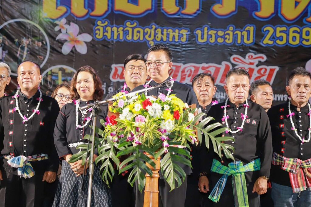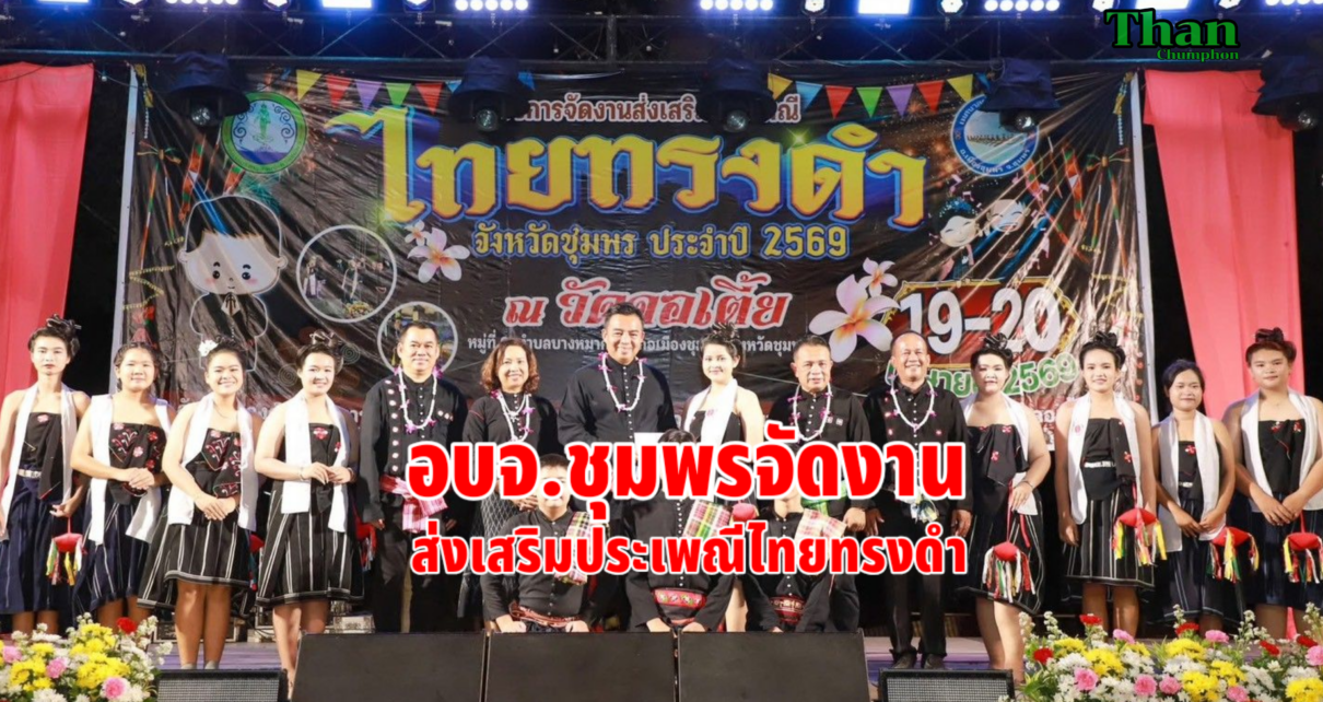 องค์การบริหารส่วนจังหวัดชุมพร จัดโครงการส่งเสริมประเพณีไทยทรงดำ จังหวัดชุมพร ประจำปี 2569 ระหว่างวันที่ 19 – 20 เมษายน 2569 ณ วัดคอเตี้ย ตำบลบางหมาก อ.เมือง จ.ชุมพร โดยมี นายนพพร อุสิทธิ์ นายก อบจ.ชุมพร เป็นประธานในพิธีเปิดงาน โดยมี นายอภิชัย อินทนาคม ประธานสภา อบจ.ชุมพร กล่าวรายงานวัตถุประสงค์การจัดโครงการ และมี นายวิชัย สุดสวาสดิ์ สส.ชุมพร เขต 1 ร่วมเป็นเกียรติพิธีเปิดงานในครั้งนี้