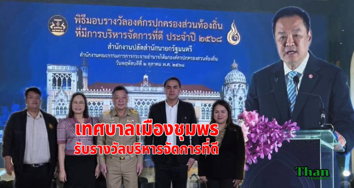 เทศบาลเมืองชุมพรรับรางวัลการบริหารจัดการที่ดี